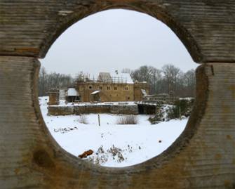 Le château philippien reconstitué, sur le site des maquettes, afin de terminer les explications sur la progression architecturale qui conduisit à ces immenses bâtisses militaires de défense.